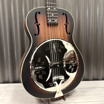 This is a great sounding biscuit resonator. Mine has a Schatten transducer. Acoustically it is banjo-ish, old school and the look really attracts attention. I added a Lace Sensor and another microphone type pickup and an extra jack. It is a tremendous instrument and great value. Form fit case is great too, light and tough!