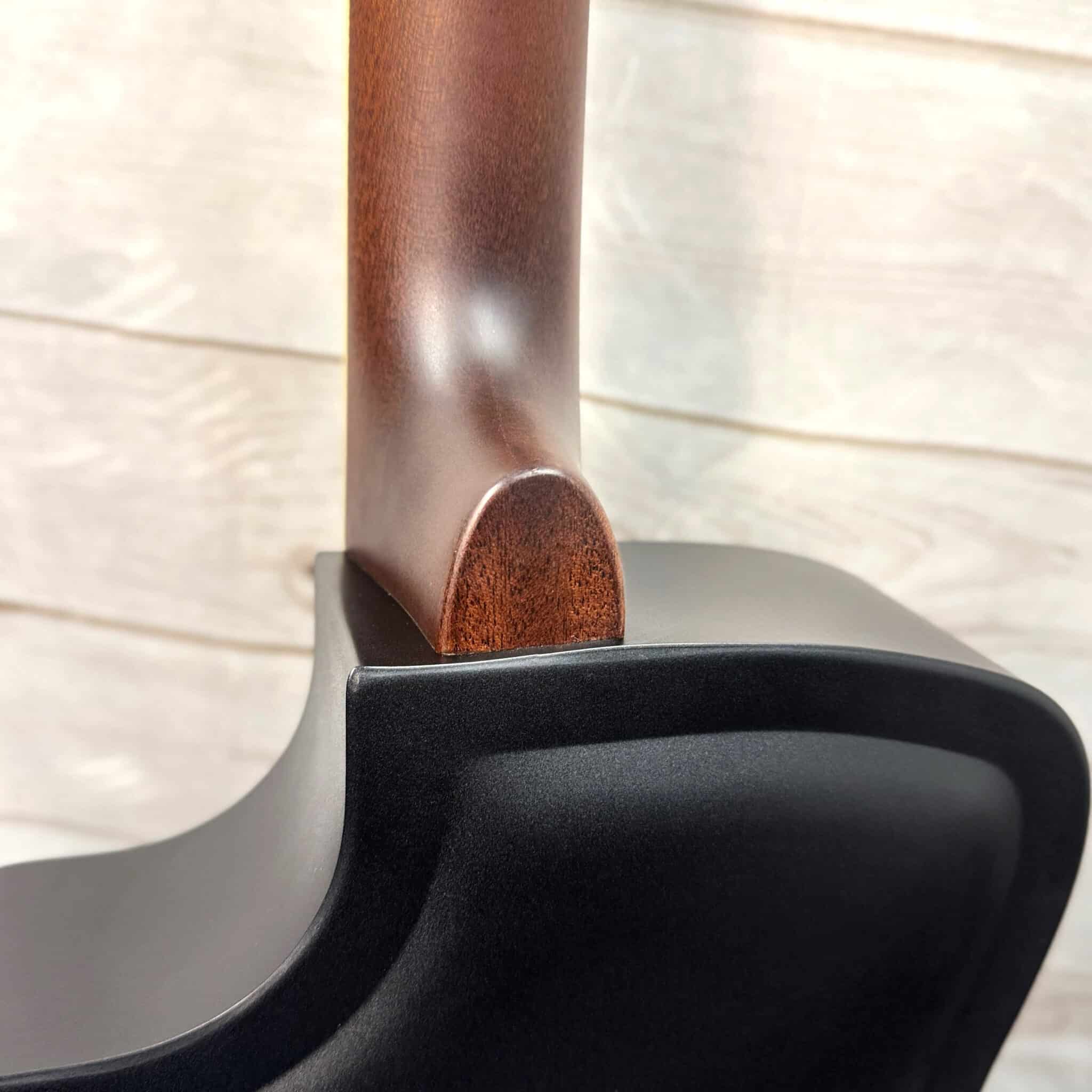 • 14 fret satin finished Mahogany neck with slotted stair step headstock