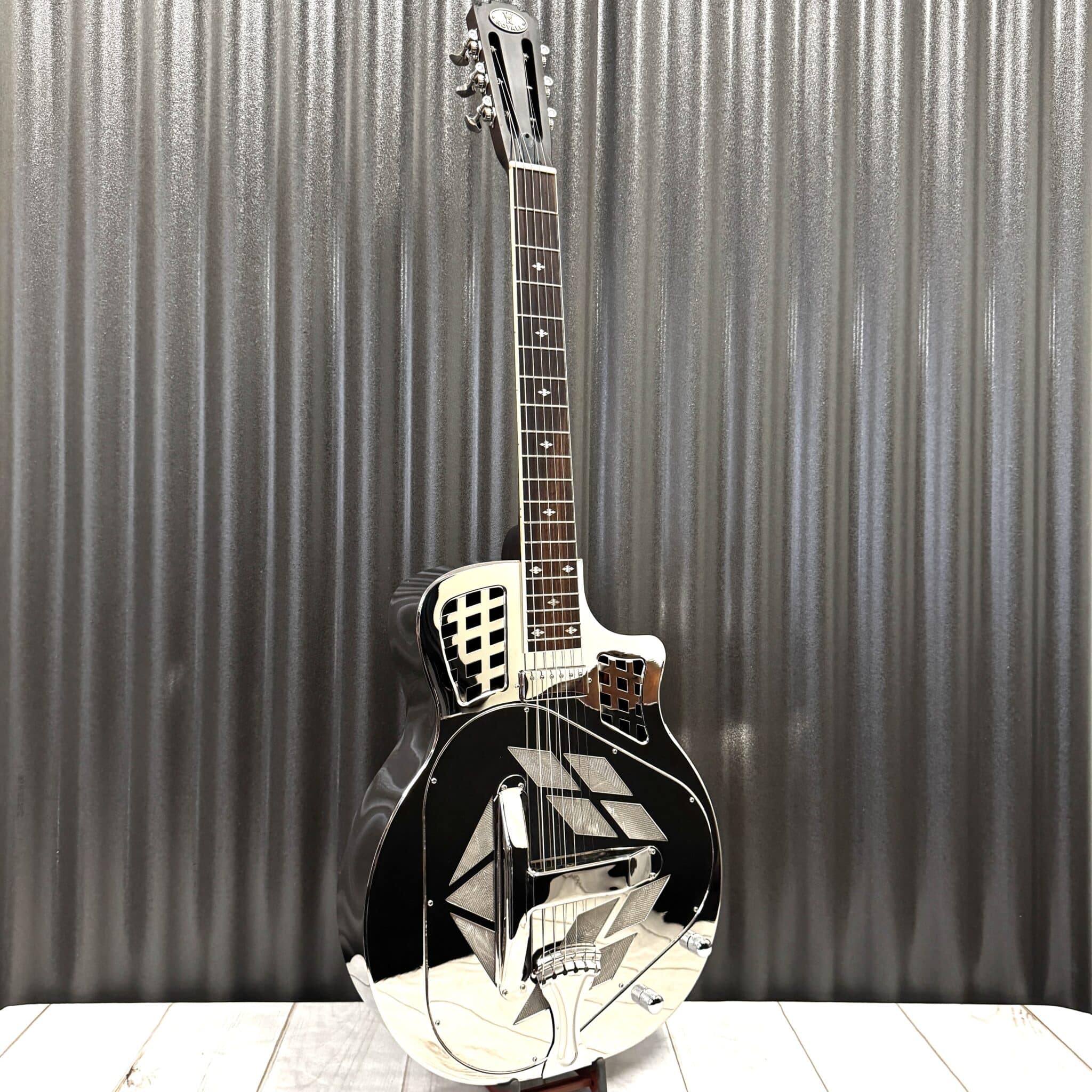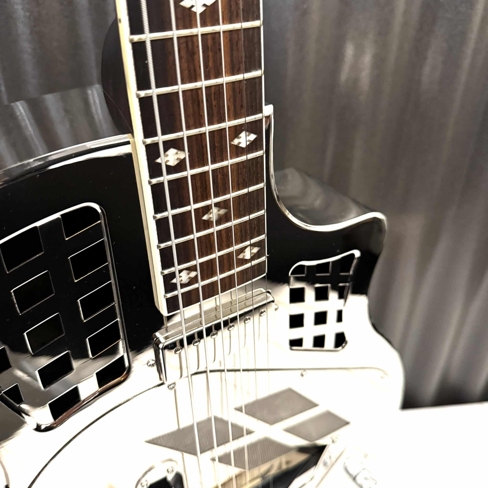 The Trifecta is our 14 fret tricone model in the Royall Resonator family. Based on the classic National Style 1, it has that distinctive tricone sustain and creamy tone. Now with our new “Jester” Minihumbucker Pickup, they have extra warmth and punch when you plug in. All of our resonators go through a 20 point inspection by our skilled guitar techs before shipment. After inspection, and or adjustment, we double polish the frets, condition the fingerboard, stretch the strings, and tune to pitch. Giving you a wonderfully smooth action and playability right out of the box.