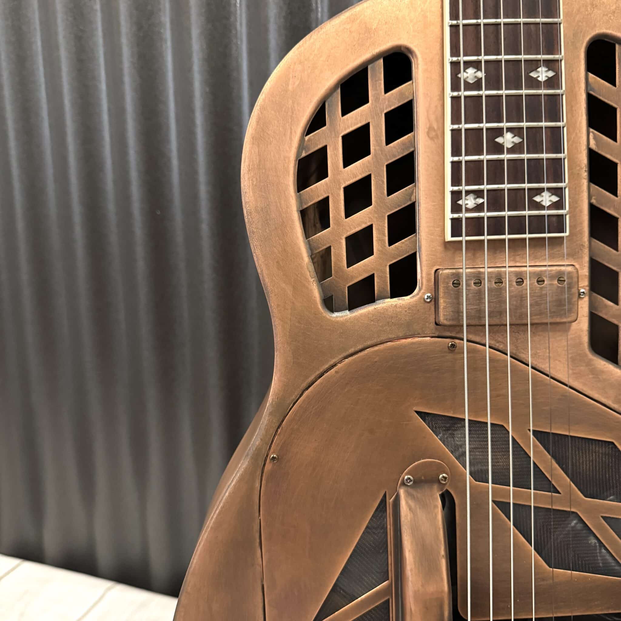 The Trifecta Classic is our 12 fret tricone heavy hitter full body model in the Royall Resonator family. Based on the classic National Style 1, it has that distinctive tricone sustain and creamy tone. Now with our new “Jester” Minihumbucker Pickup, they have extra warmth and punch when you plug in. All of our resonators go through a 20 point inspection by our skilled guitar techs before shipment. After inspection, and or adjustment, we double polish the frets, condition the fingerboard, stretch the strings, and tune to pitch. Giving you a wonderfully smooth action and playability right out of the box.
