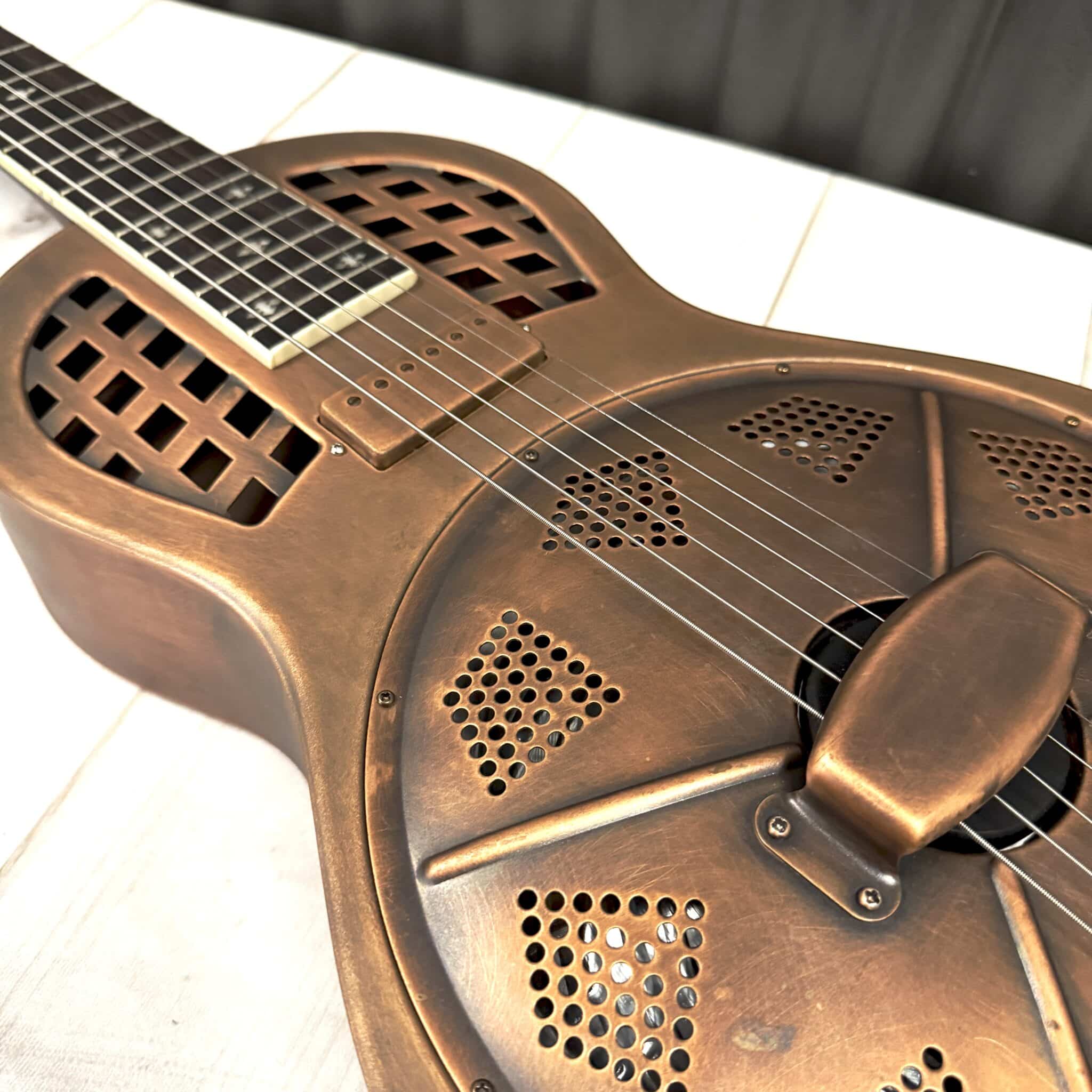 • Traditional diamond burned copper finish resonator cover