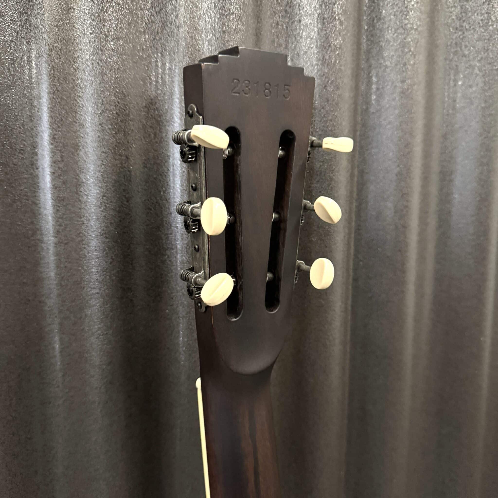 All of the resonators we make in our shop have their own individual character. With different relic looks for the same finish, or the dark or light fingerboards, we want you to be able to choose the one that best suits your needs. Therefore, all of our resonators are individually photographed with their Royall serial number in the listed tag. The instrument in the numbered listing is the exact one you will receive.