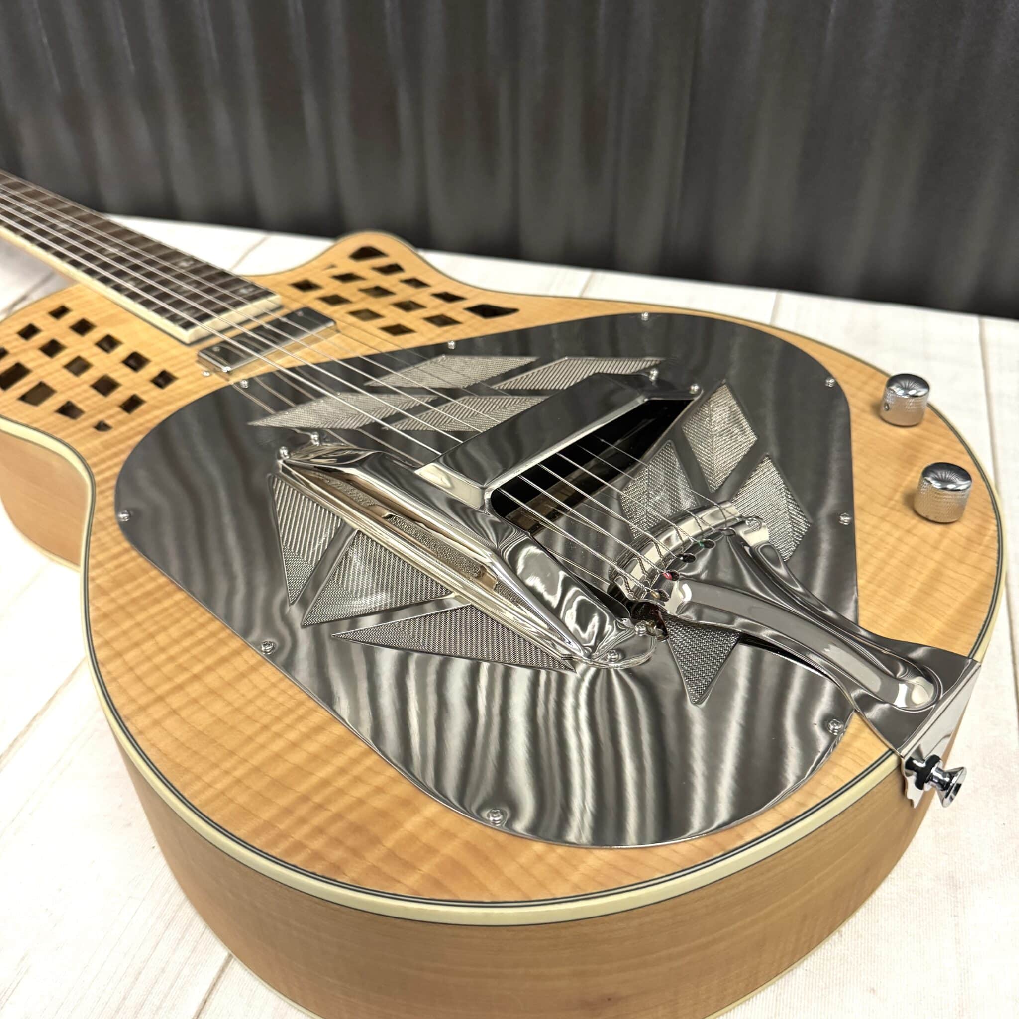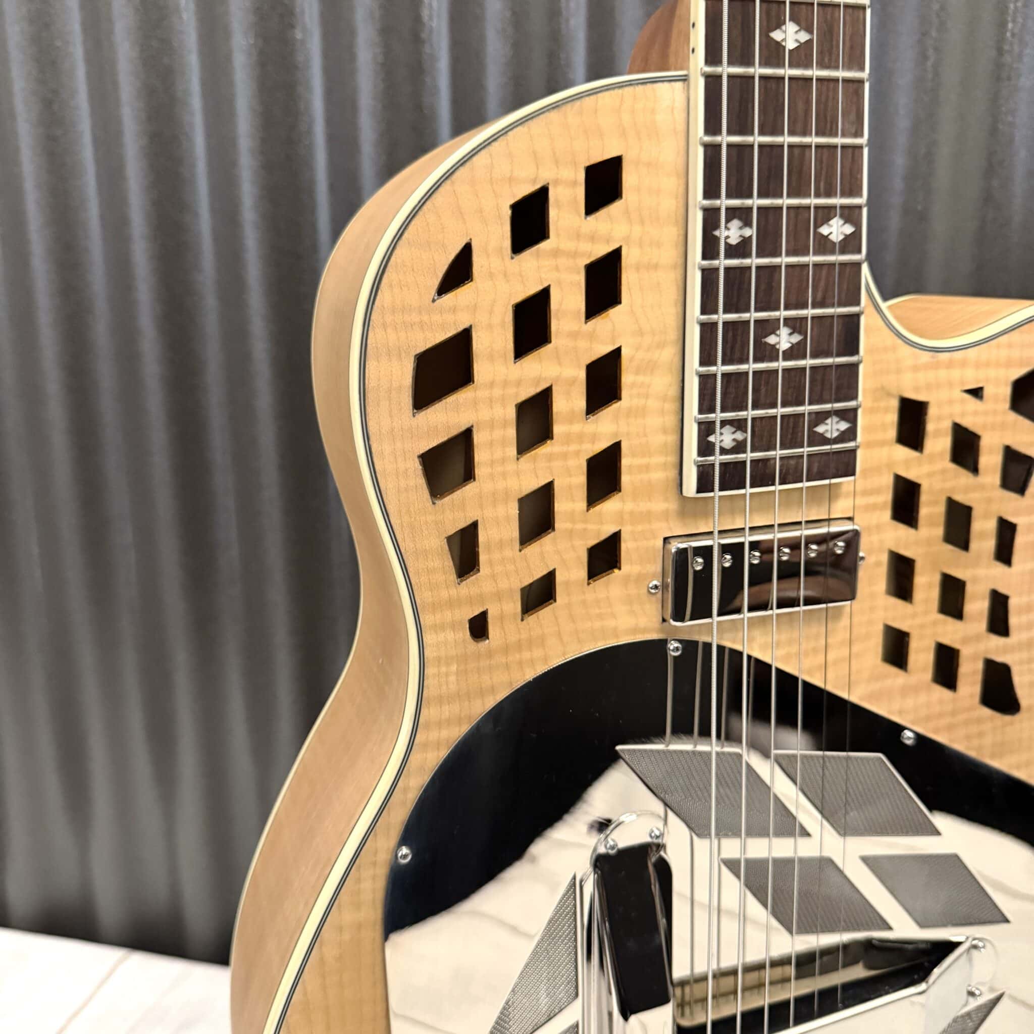 Royall 231832 Trifonium Cutaway Flame Maple Natural Finish Tricone Resonator With “Jester” Mini Humbucker Pickup