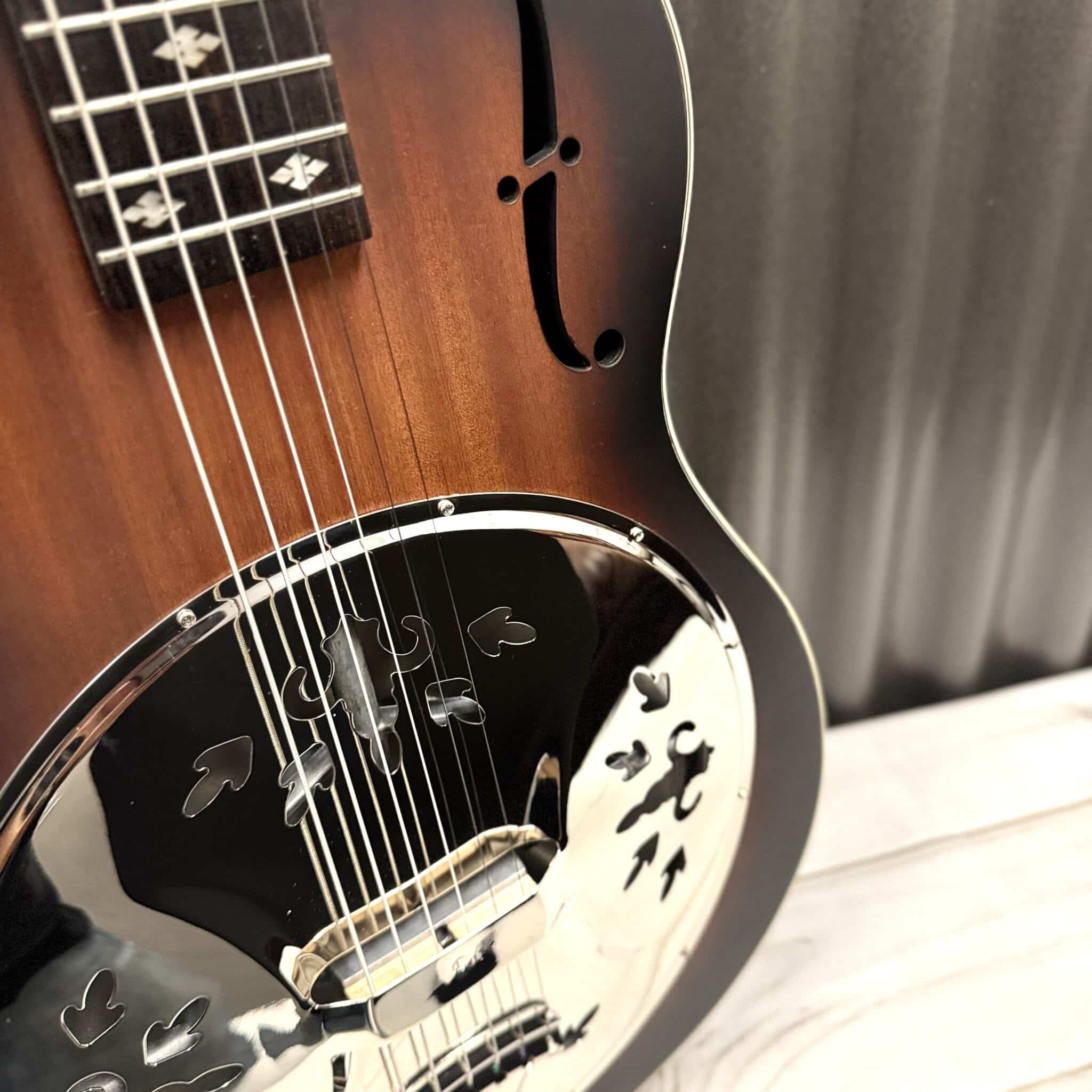 The all new SC Royall Spider is a 14 fret all solid Sapele mahogany body singlecone model from Royall Resonator family. Based on the original Dobro models, it has that distinctive inverted cone tone and sustain, plus really nice tonewood harmonics and mellowness from the solid Sapele mahogany body. We developed our brand new W198 body shape specifically for this model. After many years of listening to our customers, we have finally found the right body shape and configuration for our all new spidercone models. We are sure you will love the new tone from Royall Resonators. All of our resonators go through a 20 point inspection by our skilled guitar techs before shipment. After inspection, and or adjustment, we double polish the frets, condition the fingerboard, stretch the strings, and tune to pitch. Giving you a wonderfully smooth action and playability right out of the box.