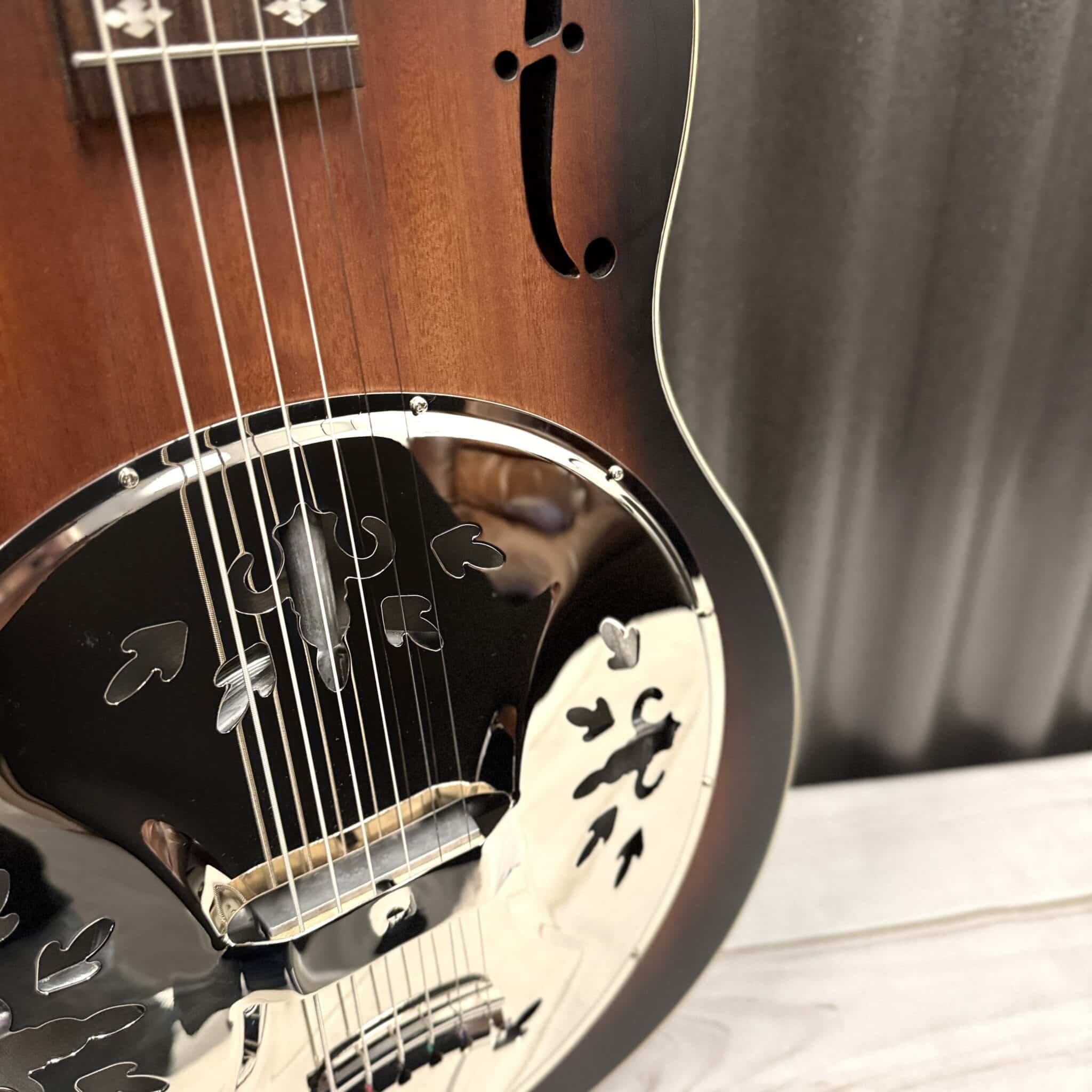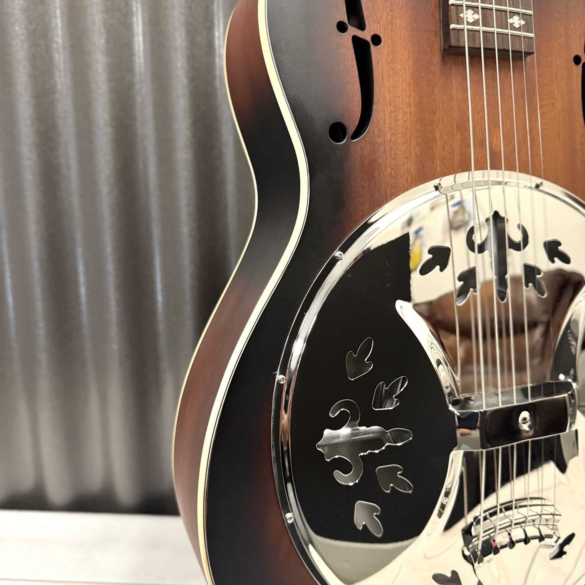 The all new SC Royall Spider is a 14 fret all solid Sapele mahogany body singlecone model from Royall Resonator family. Based on the original Dobro models, it has that distinctive inverted cone tone and sustain, plus really nice tonewood harmonics and mellowness from the solid Sapele mahogany body. We developed our brand new W198 body shape specifically for this model. After many years of listening to our customers, we have finally found the right body shape and configuration for our all new spidercone models. We are sure you will love the new tone from Royall Resonators. All of our resonators go through a 20 point inspection by our skilled guitar techs before shipment. After inspection, and or adjustment, we double polish the frets, condition the fingerboard, stretch the strings, and tune to pitch. Giving you a wonderfully smooth action and playability right out of the box.