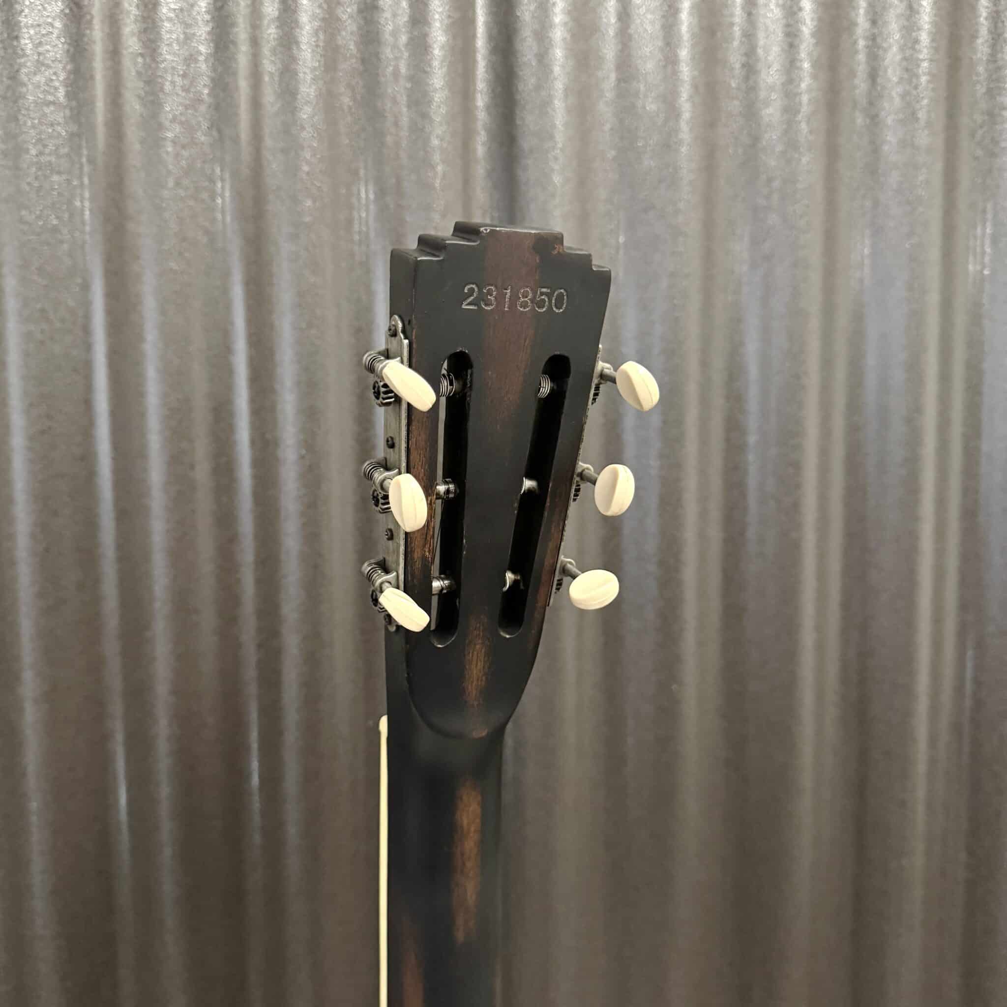 The original 1929 Triolians were usually painted a solid yellow color as were the later metal body ones. Our Royall special 198 lets the natural Sapele mahogany wood grain show through our vintage distressed and matte finishes. Triolians have a body size somewhere between a parlor size and a full sized Duolian body. Our new body shape for this model adds a bit more bottom end to the instrument, and using all solid tonewoods will add to the all around clarity of sound.
