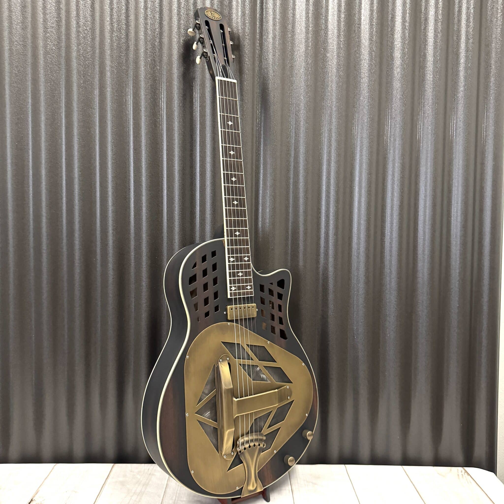 All of the resonators we make in our shop have their own individual character. With different relic looks for the same finish, or the dark or light fingerboards, we want you to be able to choose the one that best suits your needs. Therefore, all of our resonators are individually photographed with their Royall serial number in the listed tag. The instrument in the numbered listing is the exact one you will receive.