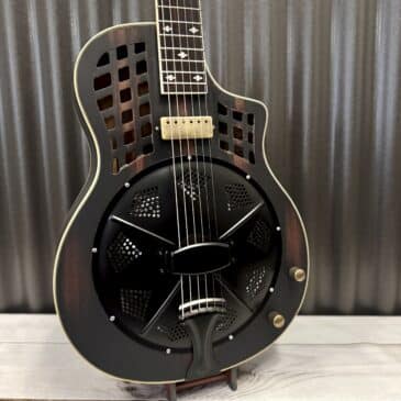 The Trifecta is our 12 fret tricone model in the Royall Resonator family. Based on the classic National Style 1, it has that distinctive tricone sustain and creamy tone.